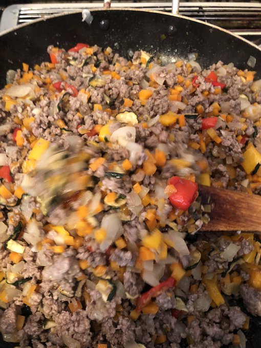 「カレーミートパイ」の具、作ってるところ。
