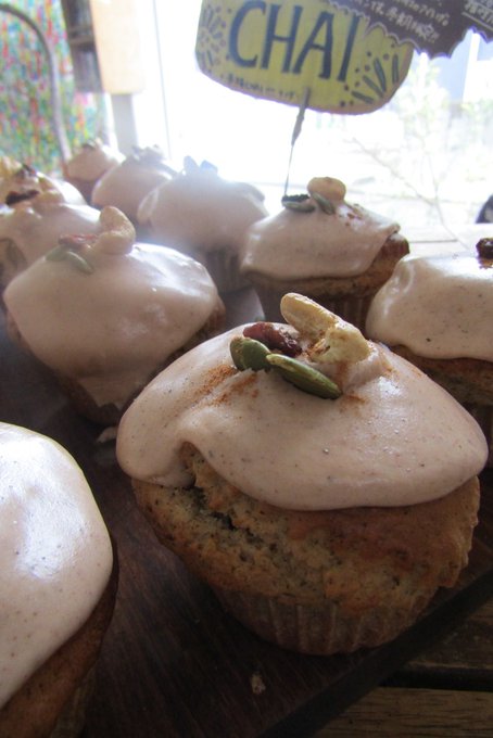 チャイも、キャロットと同じく、スパイシーな生地にミルキーなチャイの香りいっぱいのアイシングとのハーモニーが美しいマフィン!