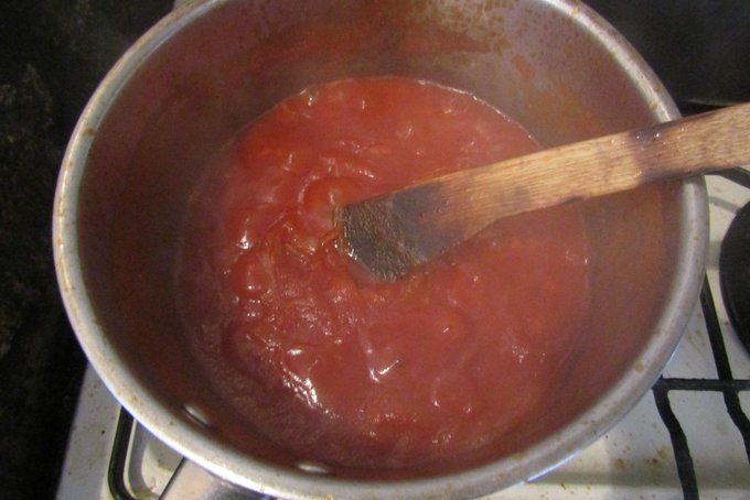 ソーセージパイ用にトマトソース。大葉ソースもダブルで入ったパンチの効いたパイに✨