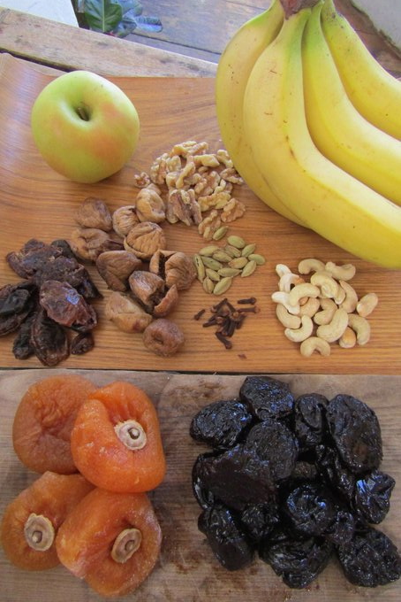 今回は、いちぢく、プルーン、デーツ、バナナ、青リンゴ、アンポ柿(!)や木の実、スパイス、全粒粉の入った、ギッシリ系アゲアゲ!