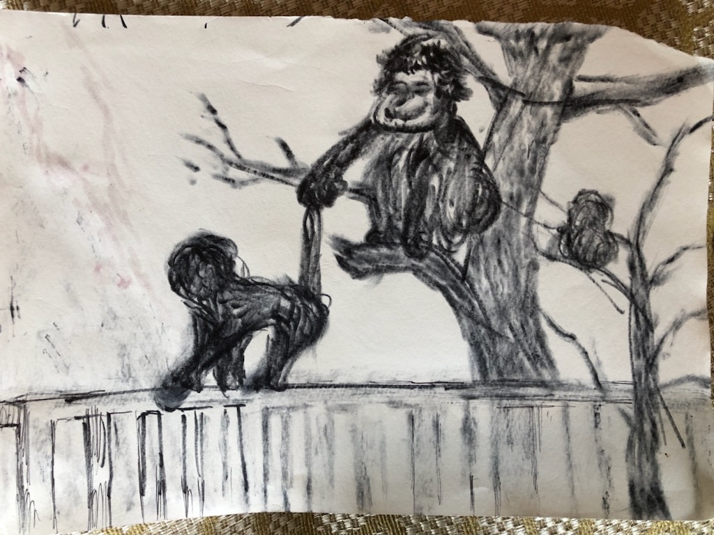 ホテルで描いた、お猿の家族。